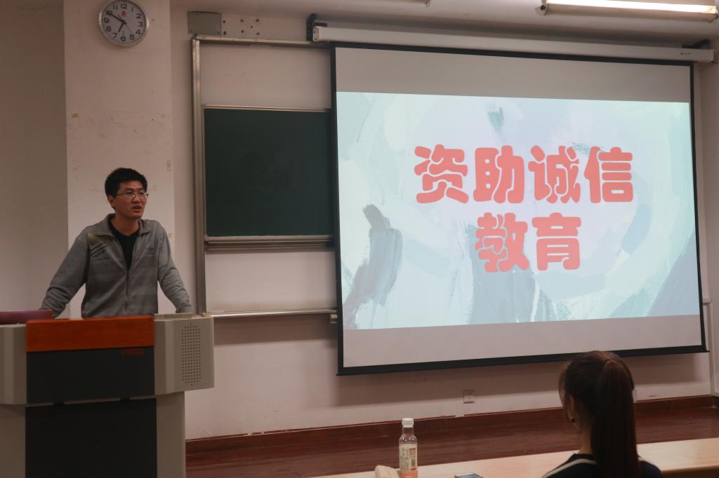 接着,冯老师重点讲述了诚信贷款的重要性。他从诚信对公民个体、国家民族的重要意义谈起,讲了资助诚信档案的作用以及失信造成的现实后果,真诚地告诫同学们“人无信不立,国无信不国”;同时,他还强调,大学是一个人形成良好道德品质的重要时期,作为最具规矩意识与法治精神的法学院学生,更应该做到“诚实做事”、“守信待人”,尊重契约精神,将诚信原则贯穿学习、生活、工作的方方面面,共同构建诚信的校园文化。讲座在同学们热烈的掌声中圆满结束。