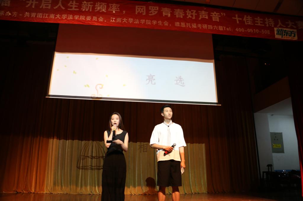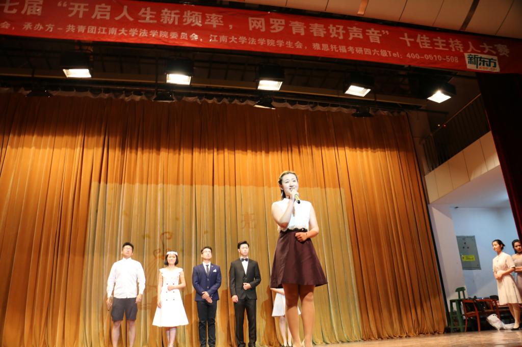 5月17日晚六点半,由法学院承办的“江南大学第十七届十佳主持人决赛”在南区大学生活动中心顺利举行。无锡电视台原新闻播音员主持人陈星、无锡新东方学校教学管理部总监夏云辉、无锡电视台电视中心融媒体管理部主任张挺、人文学院中文系副教授高侠、江南大学首席女主播任小媛、校团委宣传部部长沈丹、法学院分团委书记胡博、辅导员夏京璟担任评委。