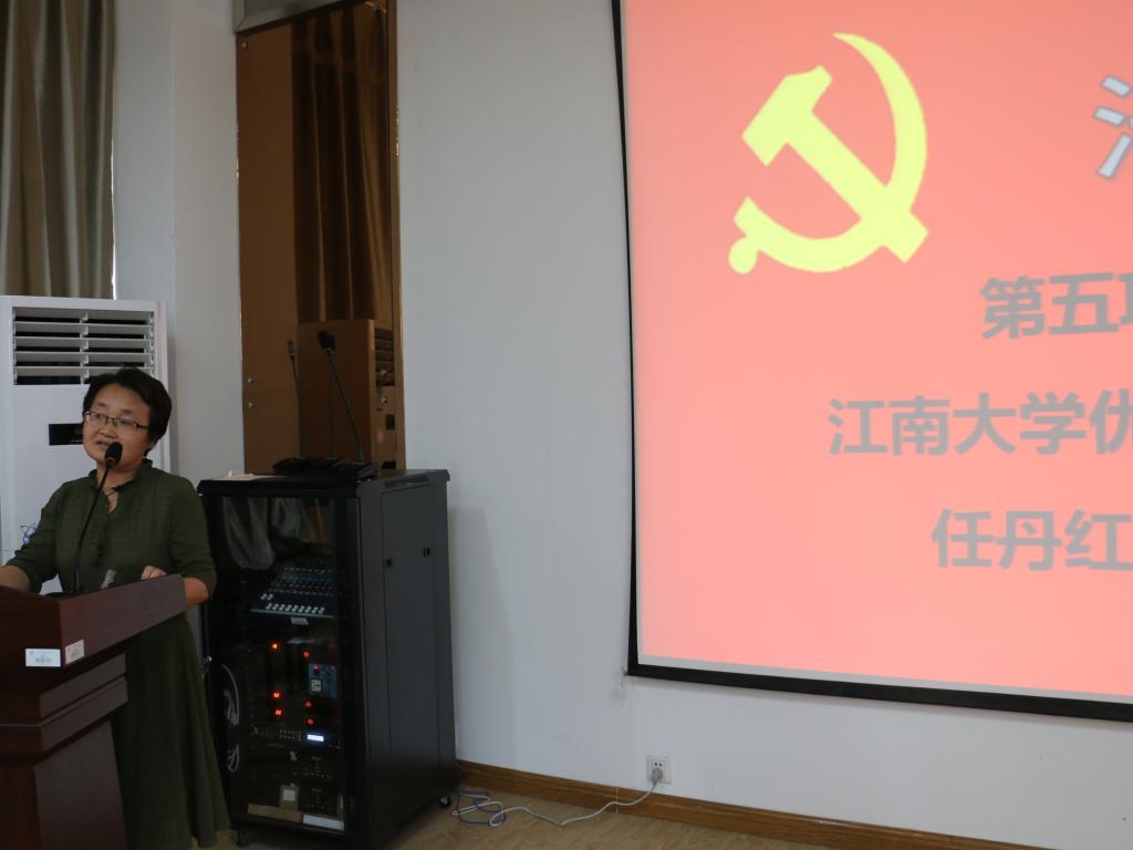 优秀教师党员代表任丹红老师发言。任老师代表老党员教师对新入党的同学们表示了热烈的欢迎和衷心的祝贺。她用自己的亲身经历告诉在座所有的新党员们,作为一名共产党员应牢记使命,践行诺言,勇当表率,奉献不止,安于平凡,拒绝平庸。并告诫同学们,应以加入党组织为界,从头做起,从点滴小事做起,不断在思想和行为上提高,早日成为一名真正的共产党员。