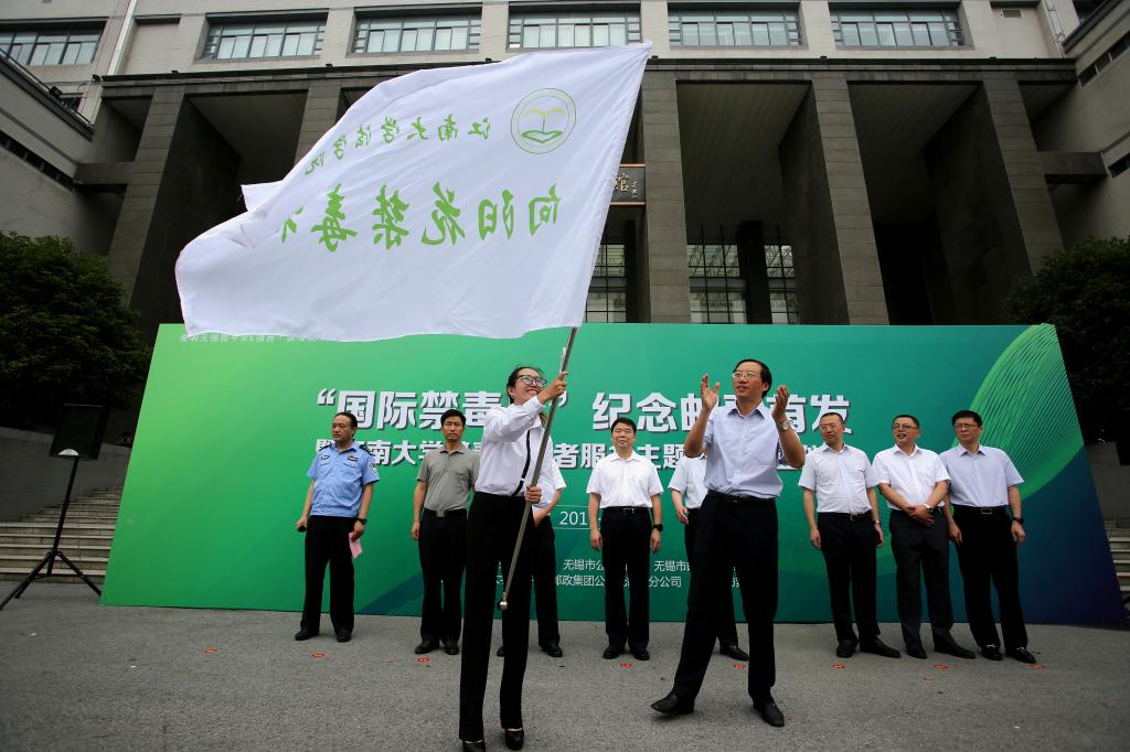 在第30个国际禁毒日到来之际,以“无毒青春,健康生活”为主题, 江南大学携手无锡市公安局,于6月26日在江南大学图书馆广场举办了“国际禁毒日”纪念邮票首发暨江南大学禁毒志愿者服务主题邮局成立仪式,同时也进行了授予365bet足球网站“向阳花”禁毒社社旗仪式。