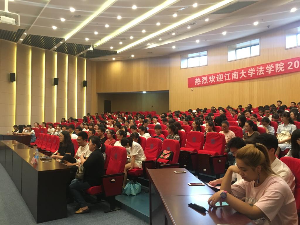 首先,由法学院院长曾祥华致辞。曾院长对法学院的师资力量进行了阐述,并总结了近几年来法学院取得的傲人硕果。在对同学们提出期望和要求的同时,也祝愿同学们能在秀美江南书写属于自己的人生篇章。教师代表汪冬冬老师的致辞作为大会的第三项议程向同学们提出了四字箴言——“不忘初心”,希望所有的同学能够怀有进取之心、仁爱之心、坚韧之心,在最美好的四年时光里吸收知识,开拓视野,辅之以精彩的课余生活,在未来的人生里能够“直挂云帆济沧海”。接着,由各位学生代表发言,法学院学生会主席宋一楠、本科新生代表王嘉傲同学、研究生代表孙恩静相继上台发言,纷纷向与会师生表达了各自的真情实感。典礼结束之际,我们邀请到了马克思主义学院的唐忠宝老师为全体新生开展入学转型教育,在掌声中,唐忠宝老师极具感染力的精彩演讲为大学生的信仰问题竖起一面正确的旗帜。