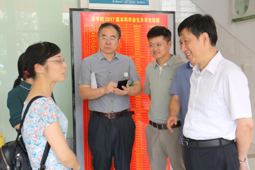 迎新工作期间,校党委书记朱拓、党委副书记戴月波在校相关职能部门负责人和学院领导的陪同下来到法学院学院迎新工作现场,看望新生及工作人员,关切地询问新生报到情况、家庭情况等,并与家长进行亲切交谈。